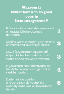 En gezonde darmen beginnen met het helen van de darmwand, het herstellen van het darmslijmvlies en het verhelpen van de ontstekingen van de darmcellen. Bottenbouillon is daarbij al eeuwen lang een onmisbaar sleutel product. >>lees hier meer over deze oeroude drank